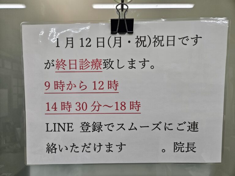 1月12日(月・祝)診療のお知らせ