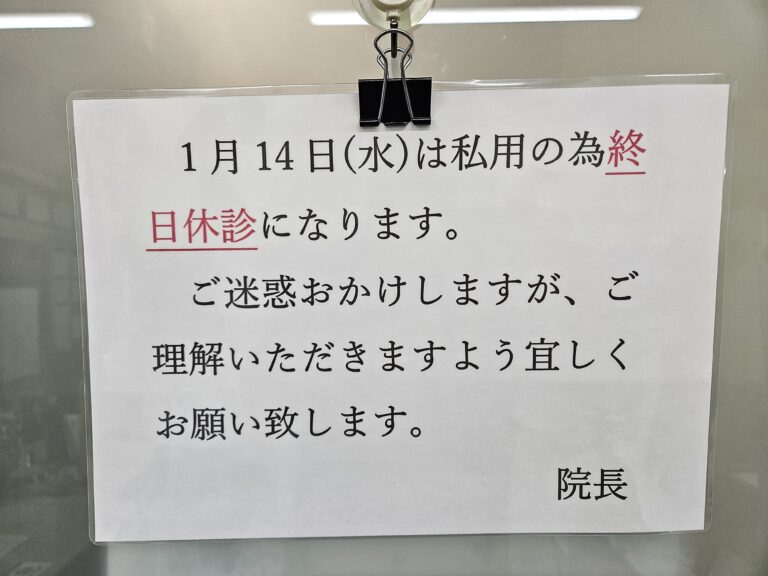 1月14日(水)臨時休診のお知らせ