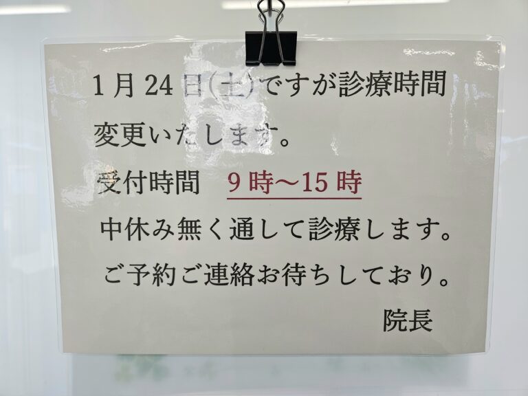 1月24日(土)診療時間変更のお知らせ