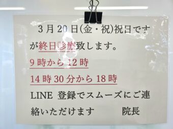 3月21日(土)はチーム帯同のため終日お休みになります。